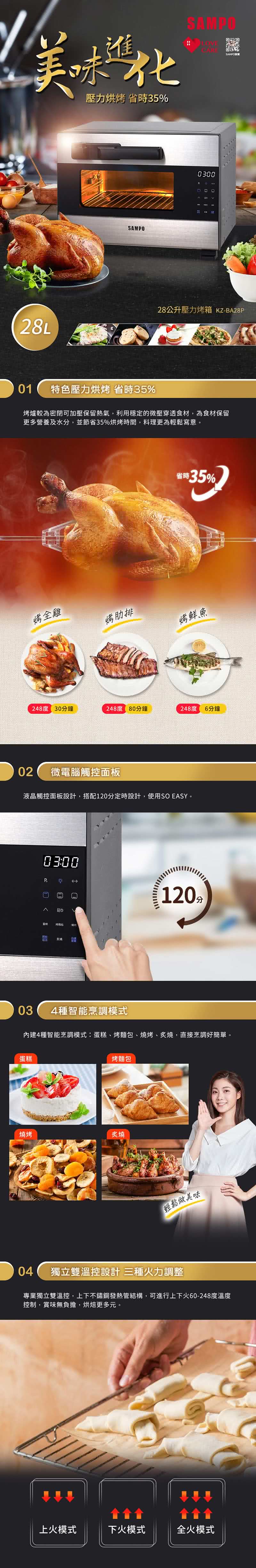 【SAMPO 聲寶】28L微壓力電烤箱(KZ-BA28P) 售價:9680