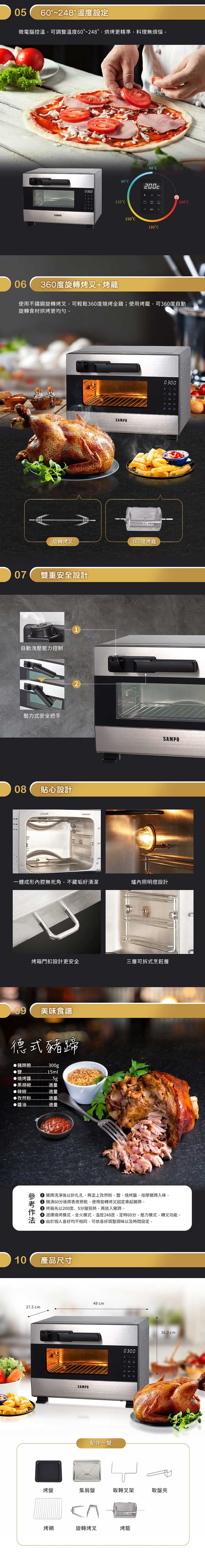 38L 大容量發酵、烘焙一機完成360度自動旋轉燒烤